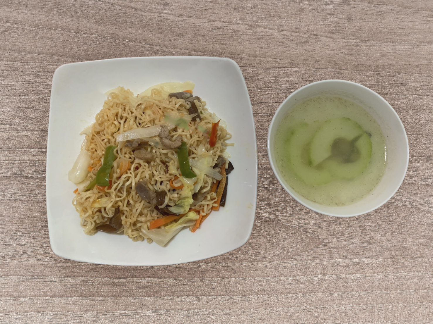 如果有湯的話看起來會稍微豐盛一點,這邊我們搭配的是當天要煮來配晚餐的的黃瓜雞湯。